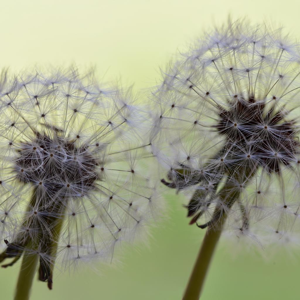 Wallpaper Two white dandelion flowers close up
