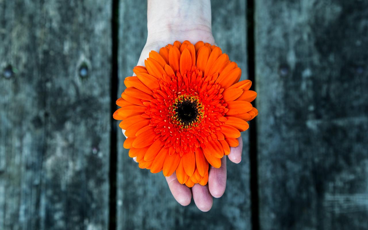 Wallpaper Gerbera flower on hand