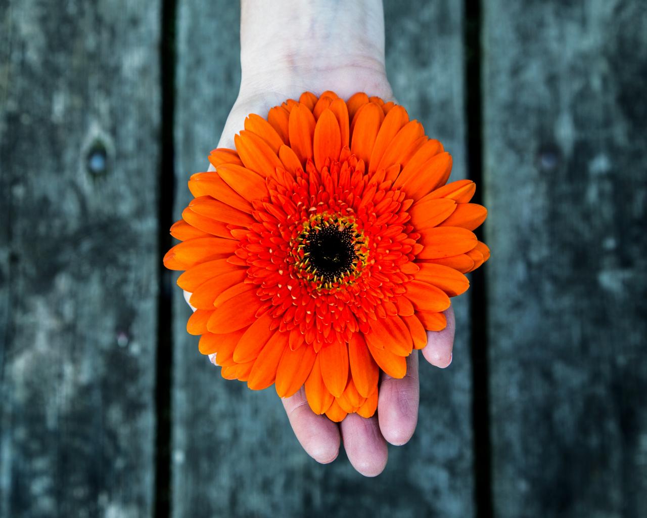 Wallpaper Gerbera flower on hand