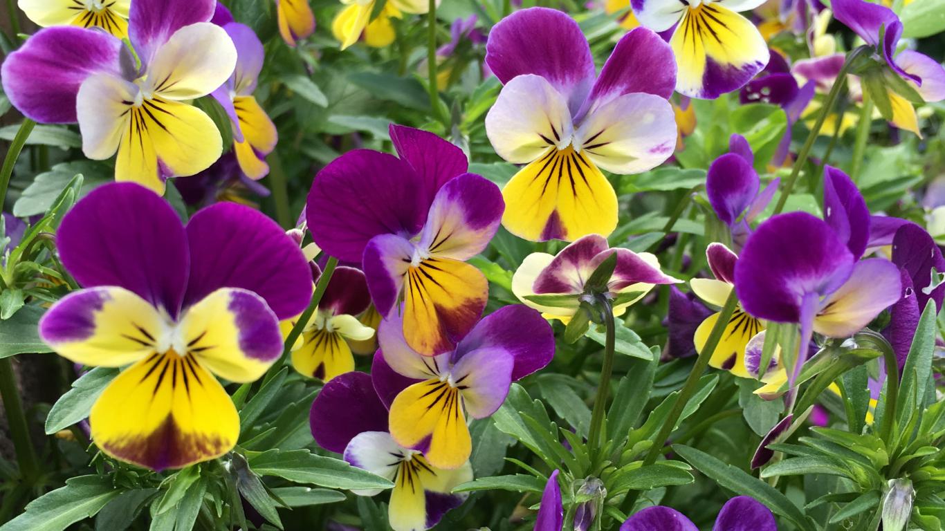 Wallpaper Delicate garden flowers pansies in a flower bed