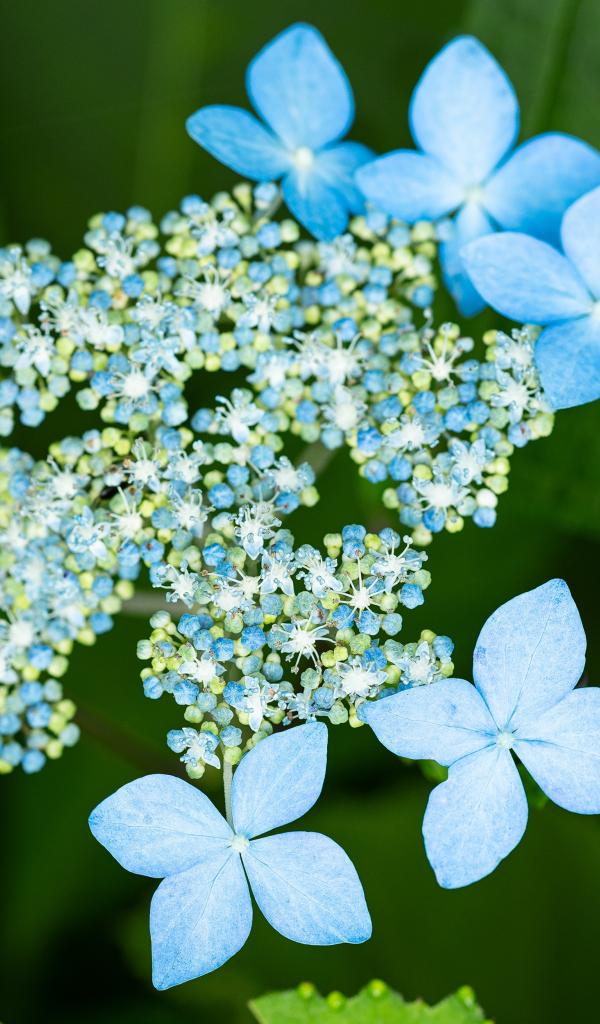 Wallpaper Blooming blue hydrangea flowers in green leaves