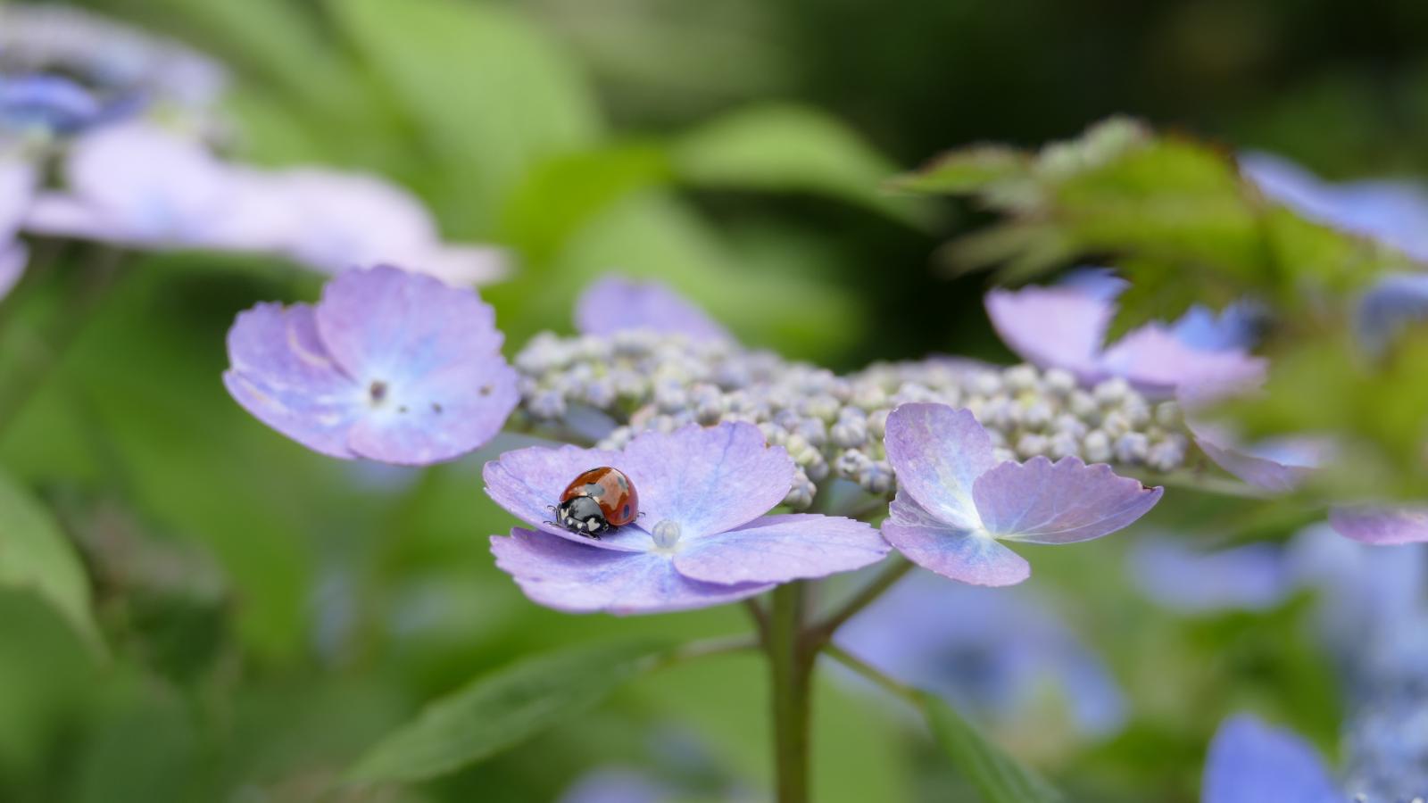 Wallpaper Lilac hydrangea flowers with ladybug