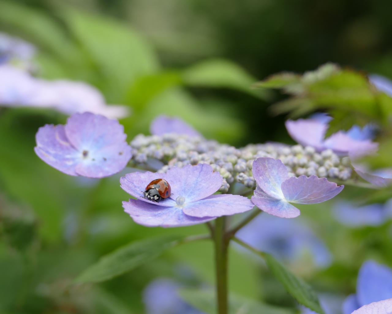 Wallpaper Lilac hydrangea flowers with ladybug