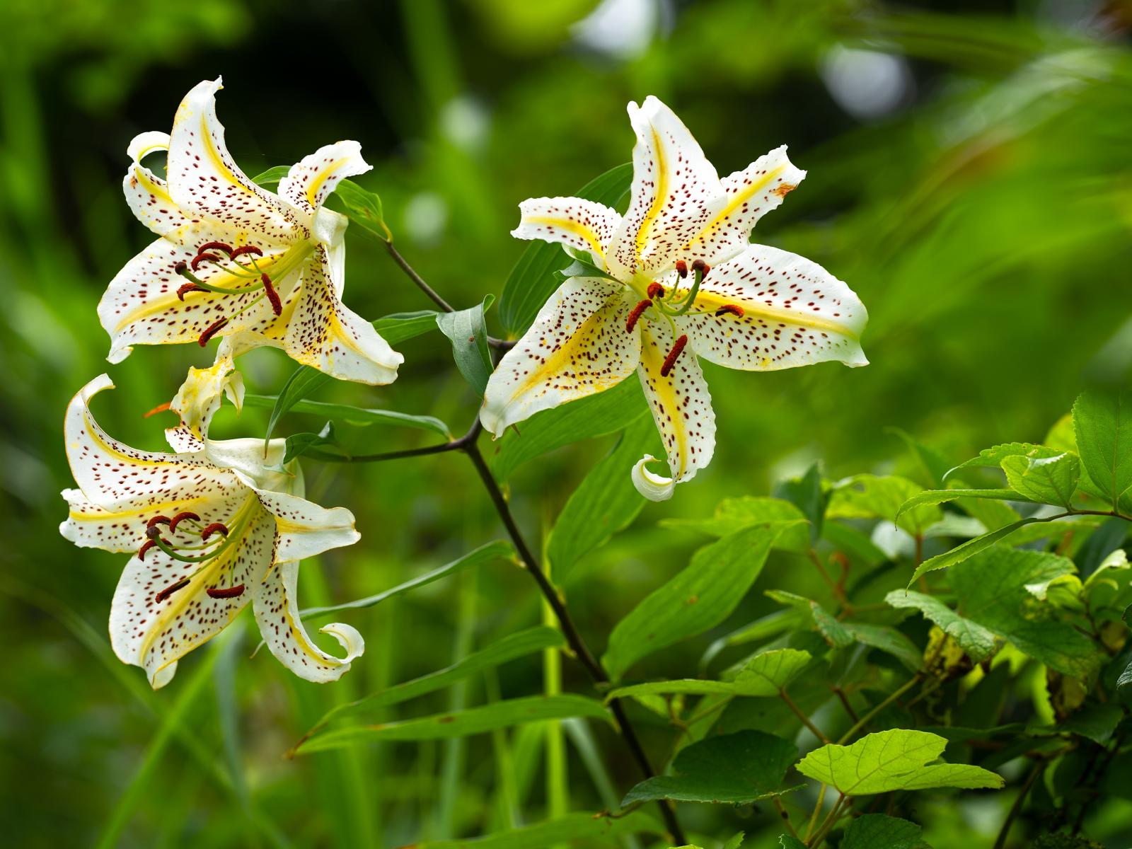 Wallpaper Three white tiger lilies in the garden