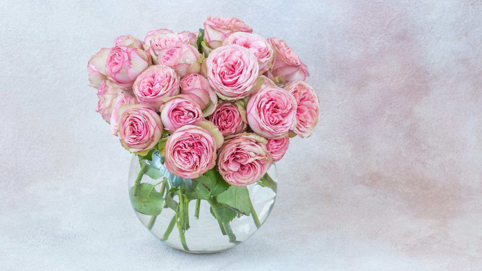 Wallpaper Bouquet of pink park roses in a glass vase