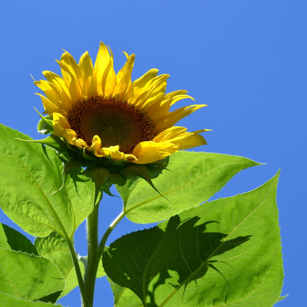 Wallpaper Yellow sunflower flower in the sun on a blue sky background