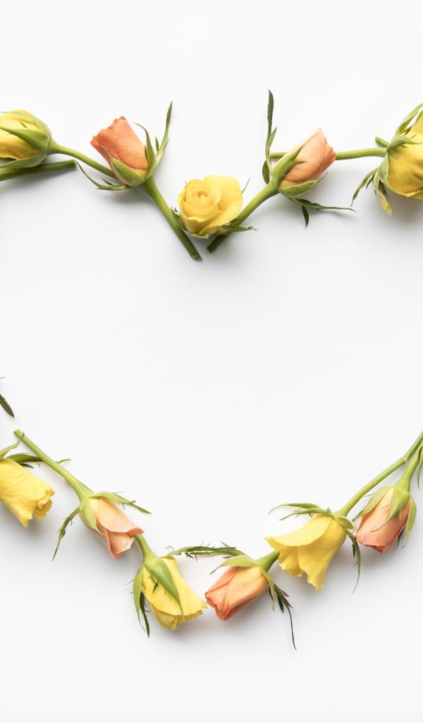 Wallpaper Heart of rosebuds on a white background