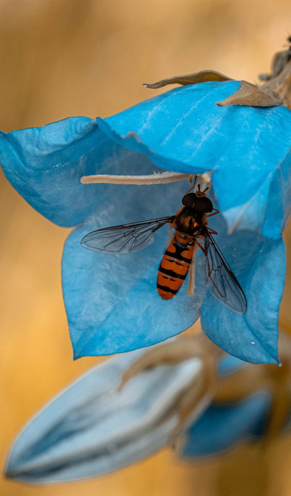 Wallpaper Blue bell flower with insect close up