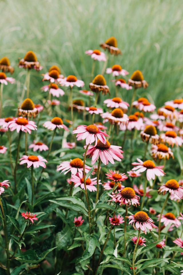 Wallpaper Pink Echinacea flowers close-up on a flower bed