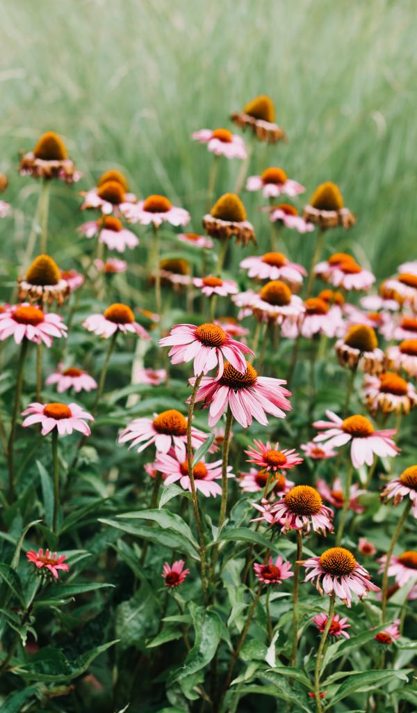 Wallpaper Pink Echinacea flowers close-up on a flower bed