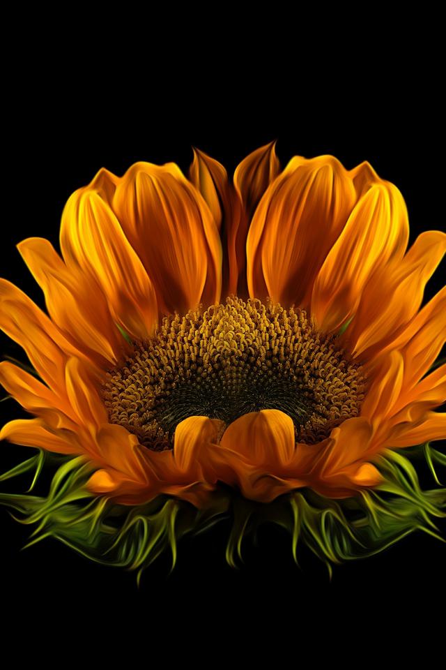 Wallpaper Sunflower flower on black background