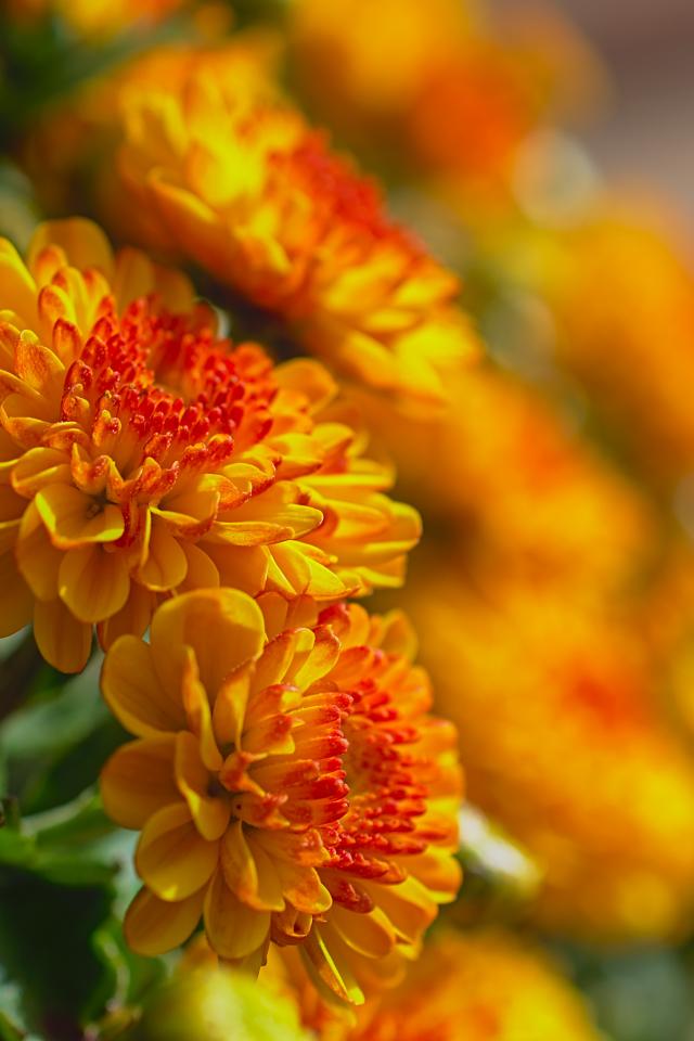 Wallpaper Beautiful orange chrysanthemum flowers with buds close up