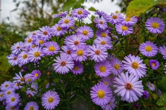 Wallpaper Purple flowers of a saintbrinka in a flowerbed in autumn