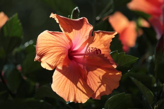 Wallpaper Pink hibiscus flower in the sun on a flower bed