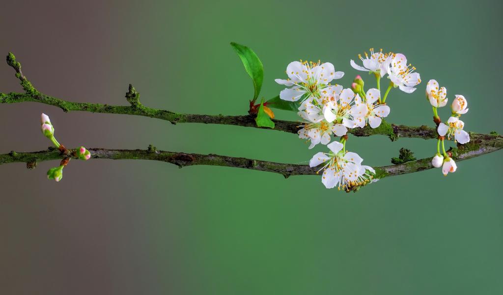 Wallpaper Delicate white cherry flowers on a branch in spring