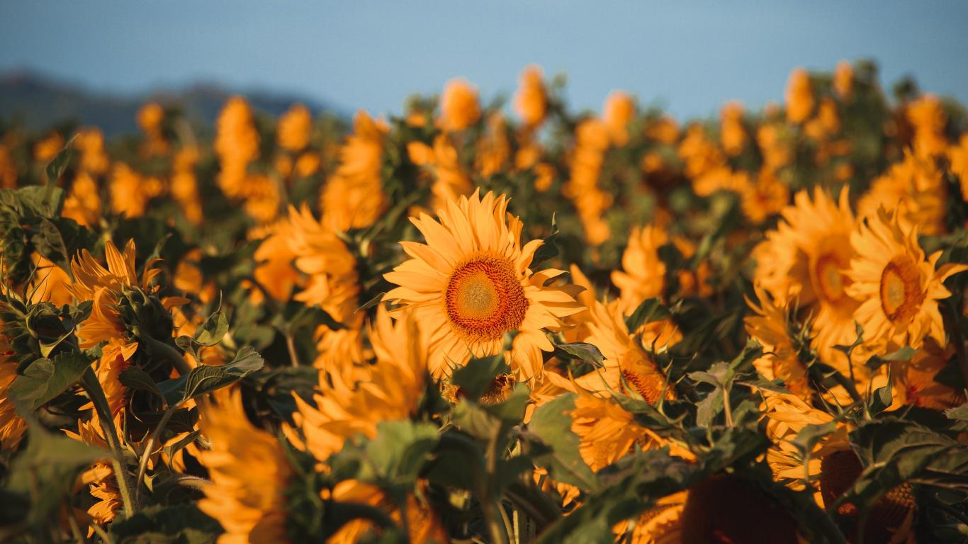 Wallpaper Field with yellow blooming sunflowers