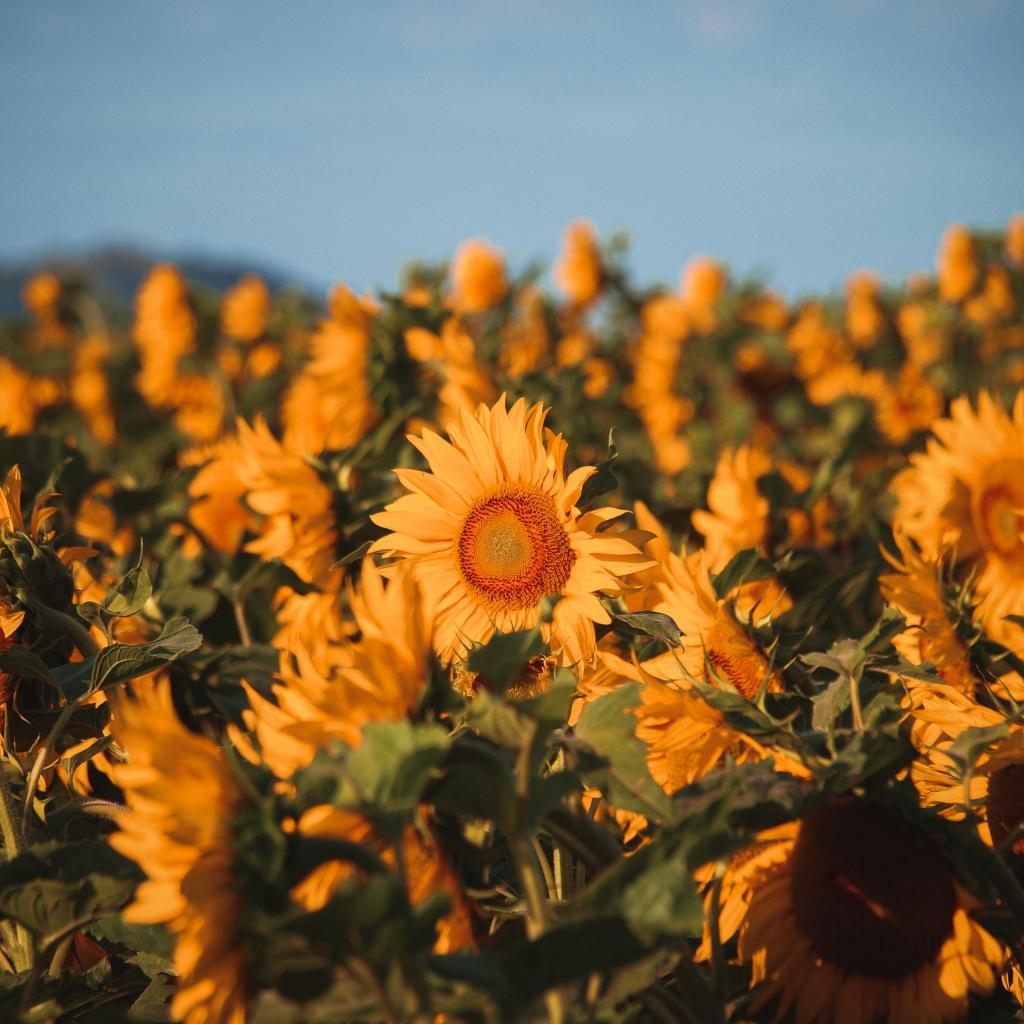 Wallpaper Field with yellow blooming sunflowers