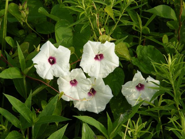 Wallpaper White flowers of morning glory in green leaves