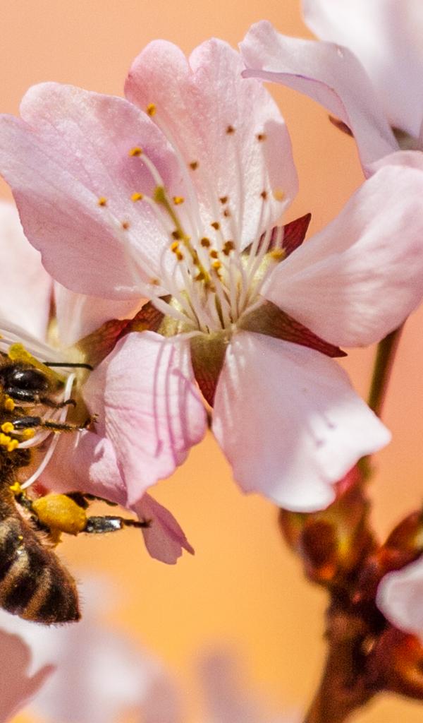 Wallpaper Pink flowers with bee close up