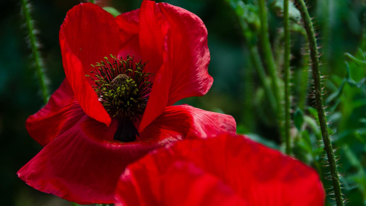 Wallpaper Poppy flower with red petals close up