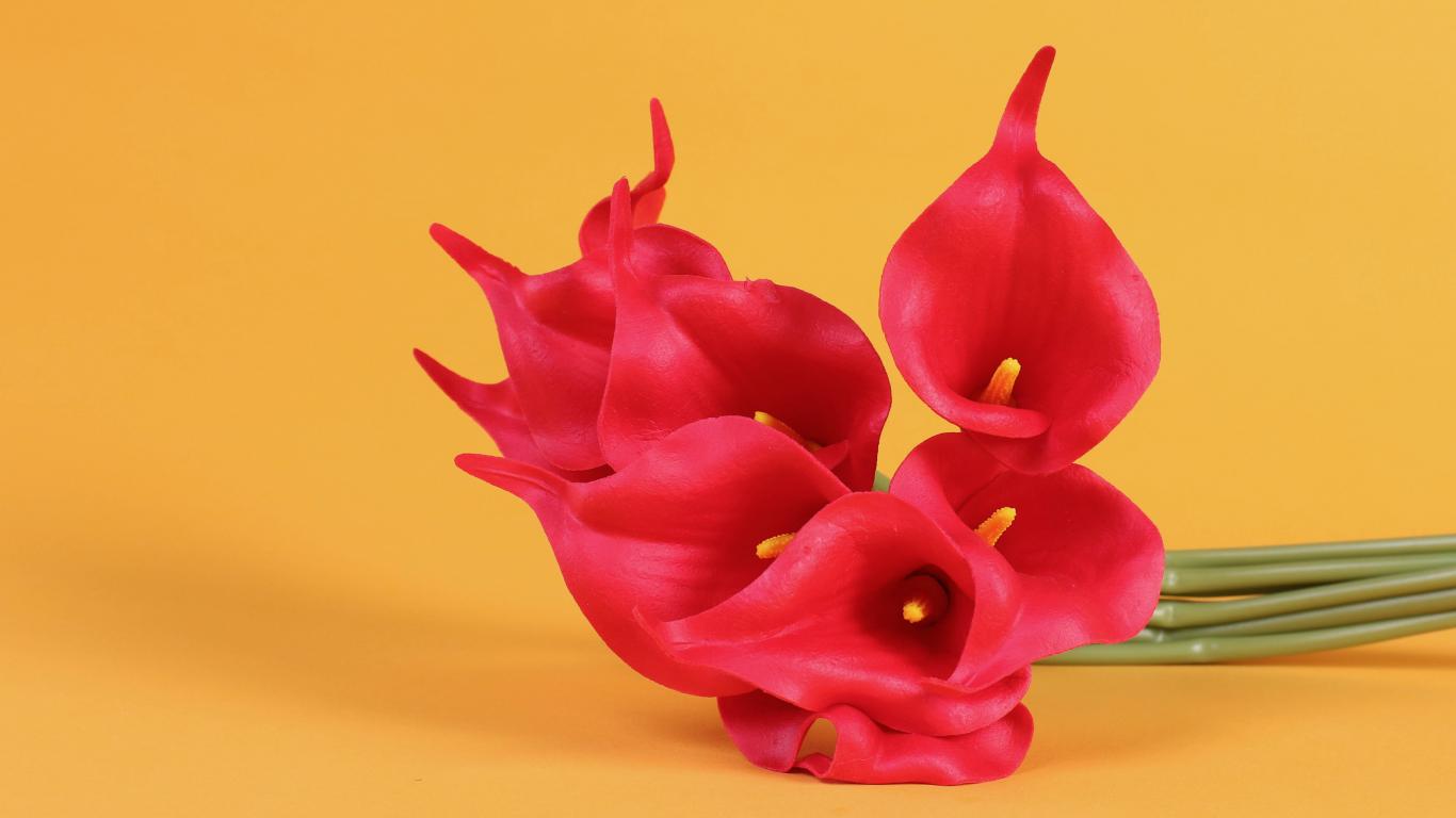 Wallpaper Red calla flowers on yellow background