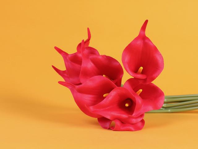 Wallpaper Red calla flowers on yellow background