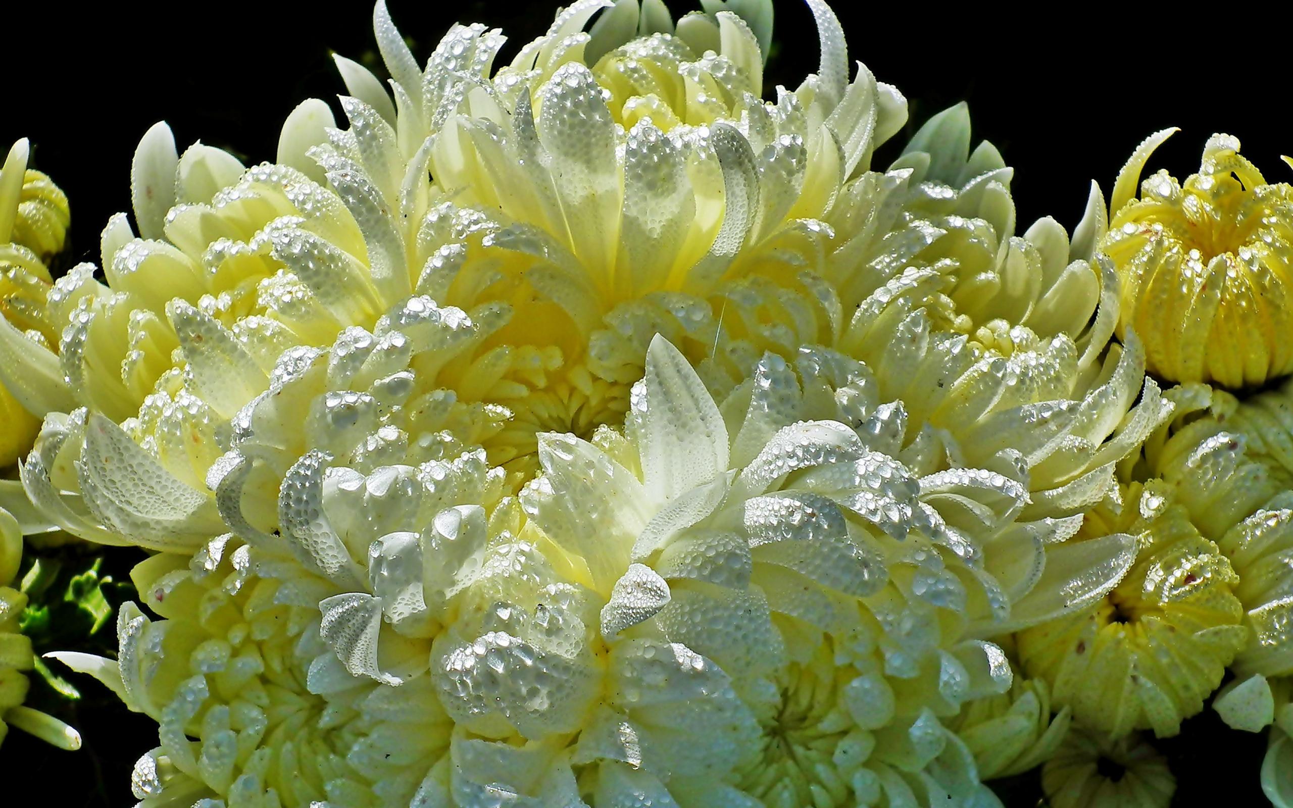 Wallpaper Beautiful yellow chrysanthemums in water drops