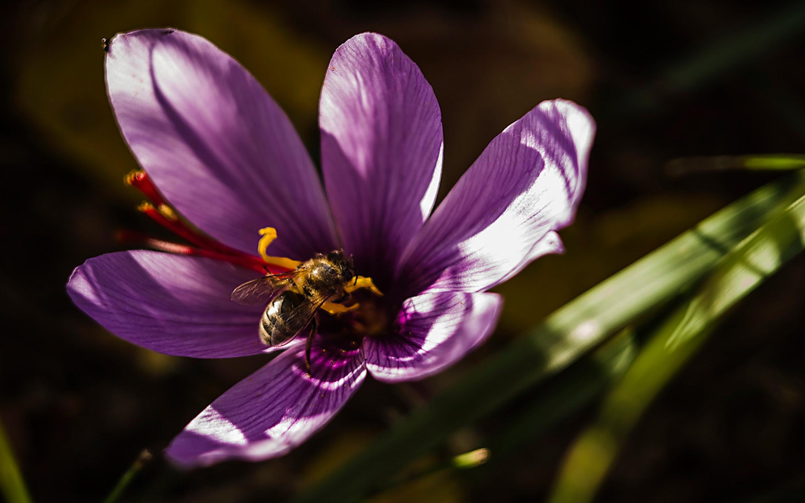 Wallpaper Purple crocus flower with bee