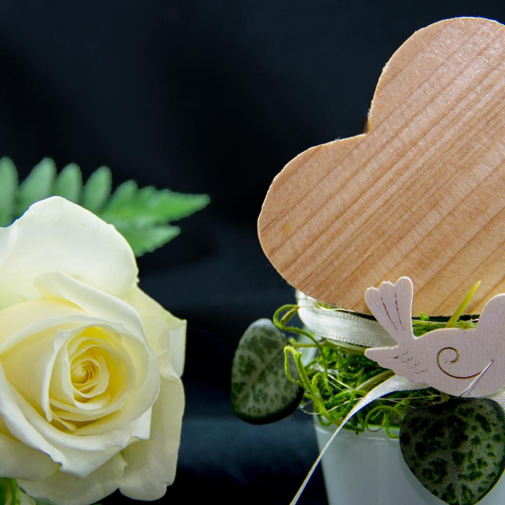 Wallpaper Wooden heart and white rose on the table