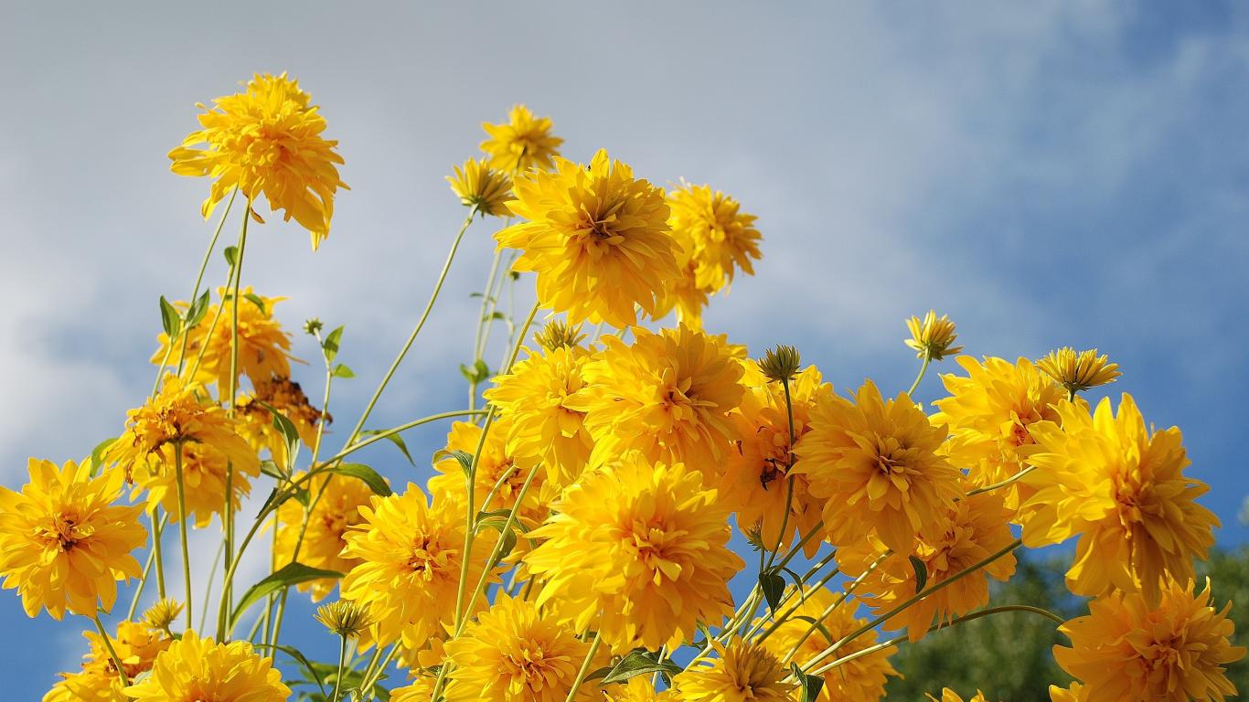 Wallpaper Rudbeckia golden balls on sky background