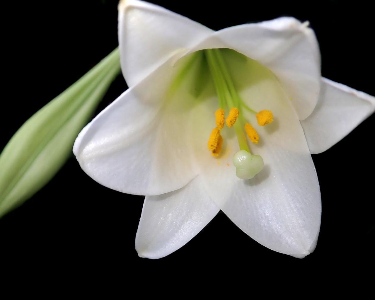 Wallpaper White lily with bud on black background
