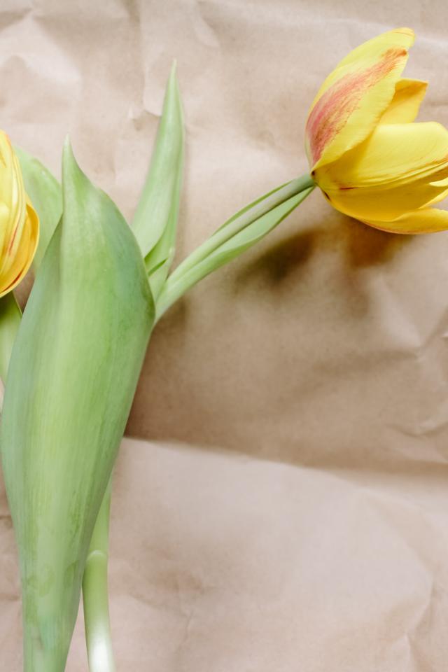Wallpaper Two tulips lie on paper