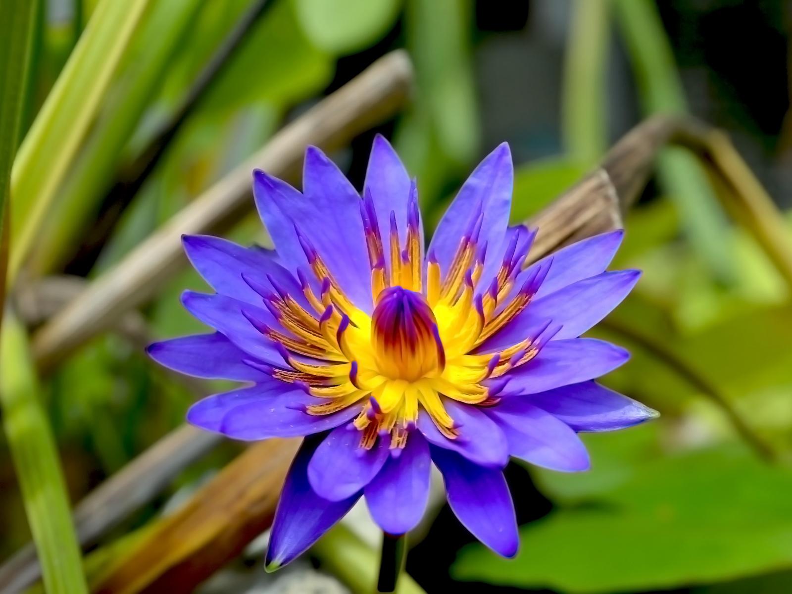 Wallpaper Purple lotus flower in green leaves close up
