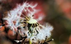 Wallpaper Seeds flown from dandelion on green background