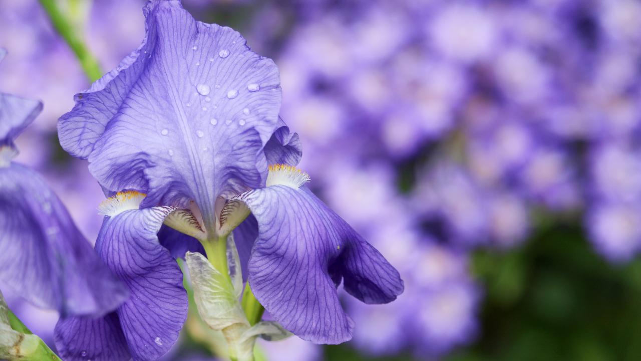 Wallpaper Beautiful purple iris flower in dew drops