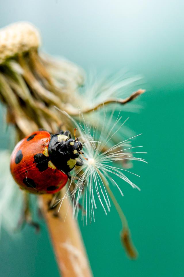 Wallpaper Red ladybug on dandelion