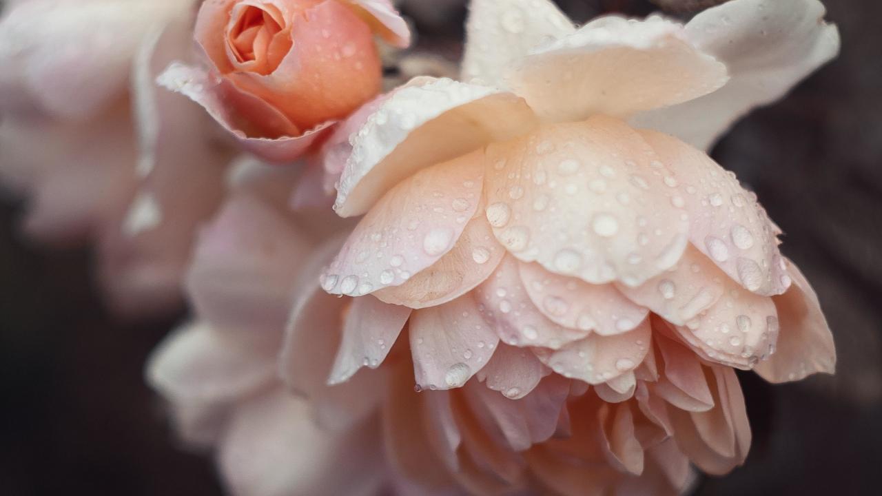 Wallpaper Pink rose flowers in raindrops
