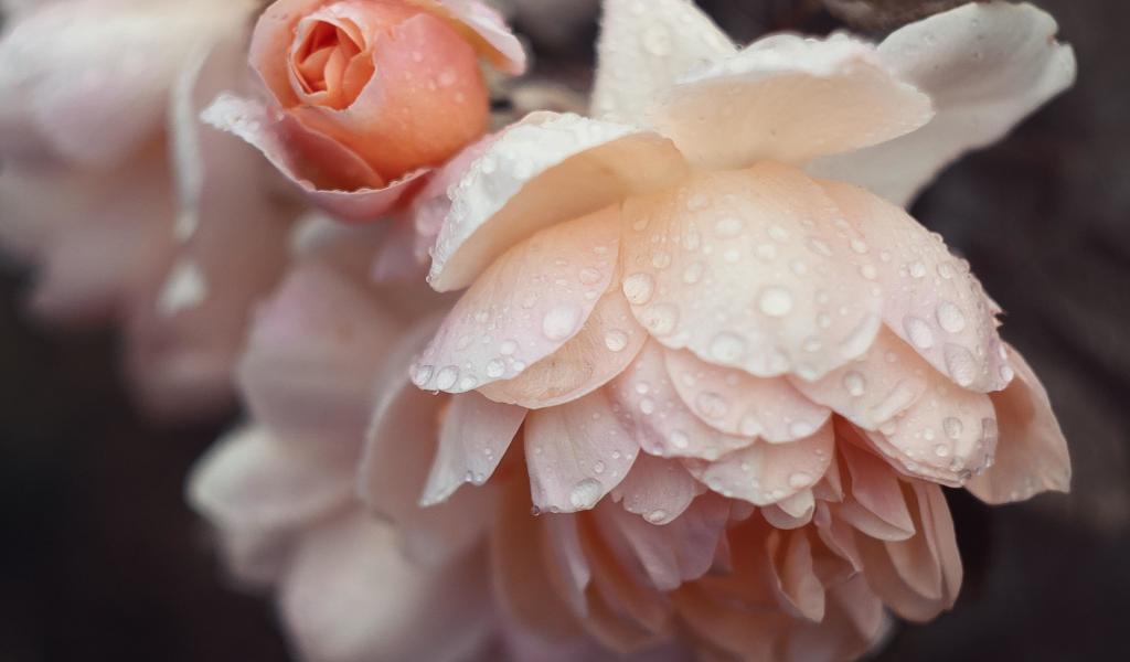 Wallpaper Pink rose flowers in raindrops