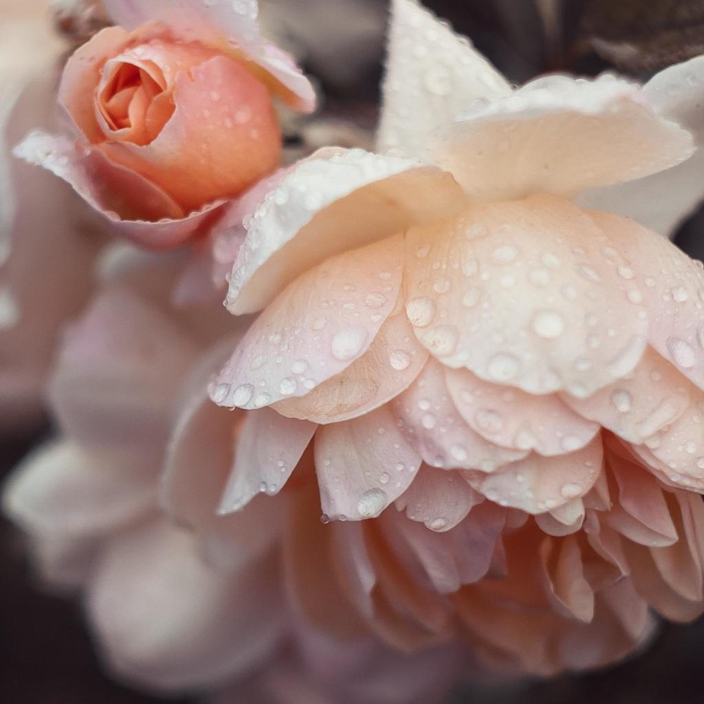 Wallpaper Pink rose flowers in raindrops