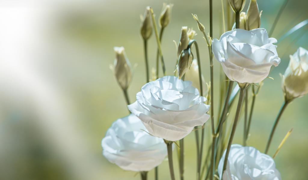 Wallpaper White eustoma flowers with buds close up