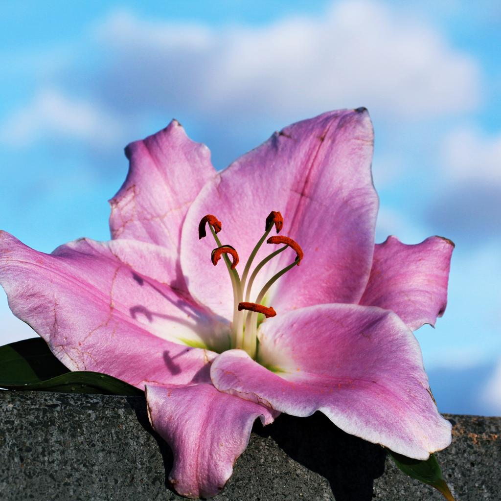 Wallpaper Pink rose lies on a stone against the sky