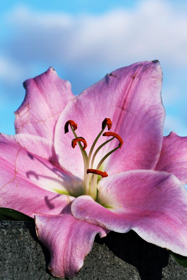 Wallpaper Pink rose lies on a stone against the sky
