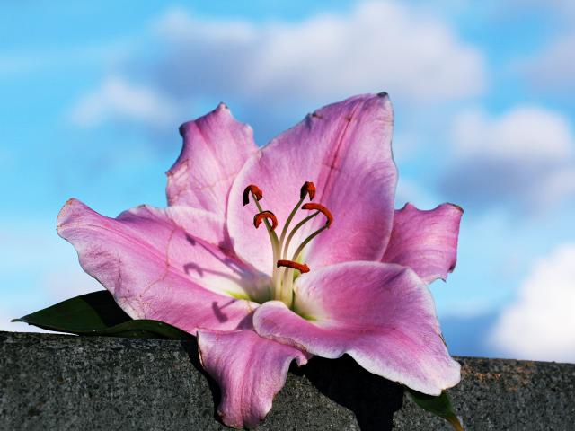 Wallpaper Pink rose lies on a stone against the sky