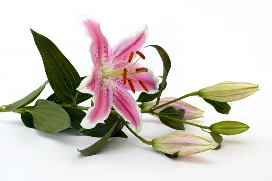 Wallpaper Pink lily with buds on a white background