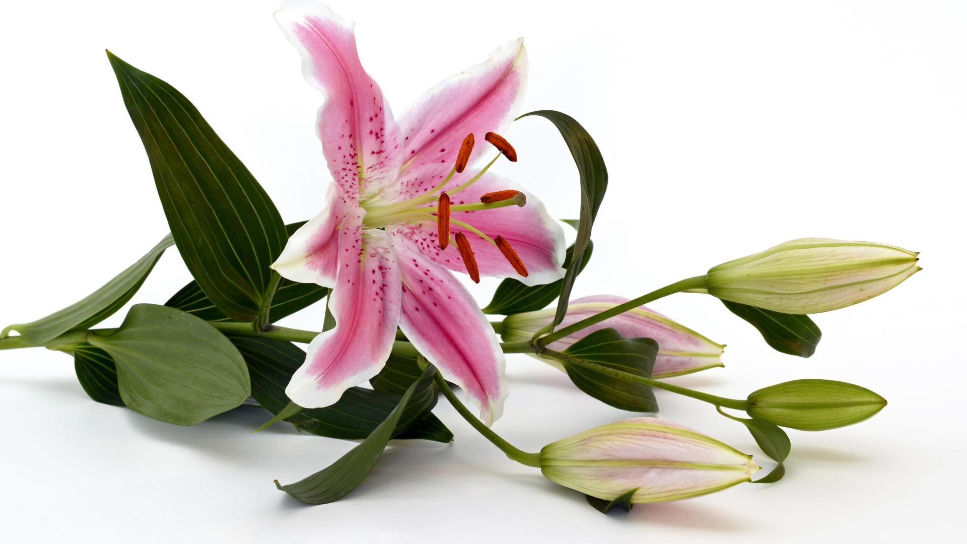Wallpaper Pink lily with buds on a white background