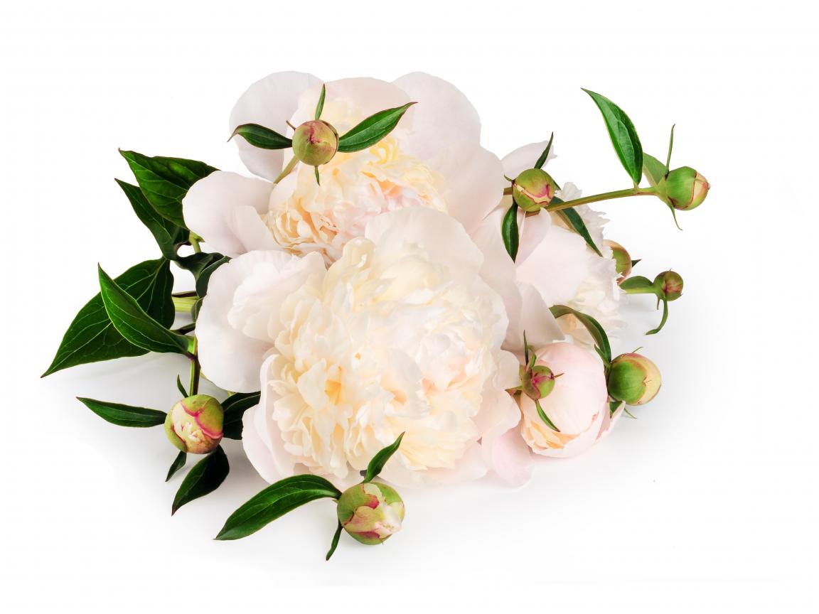 Wallpaper White peonies with buds on a white background