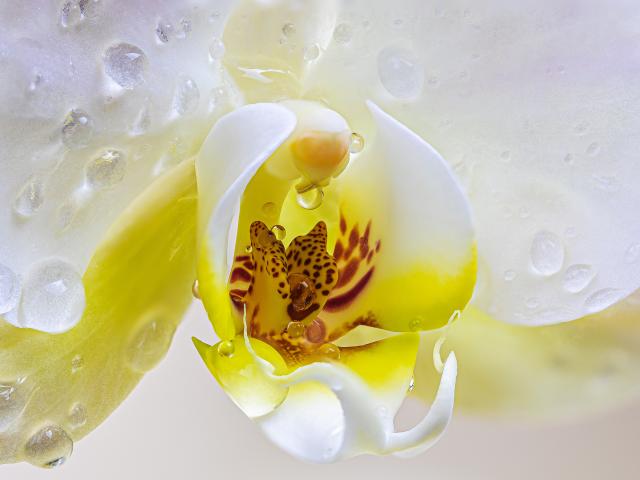 Wallpaper Middle of orchid flower in water close up