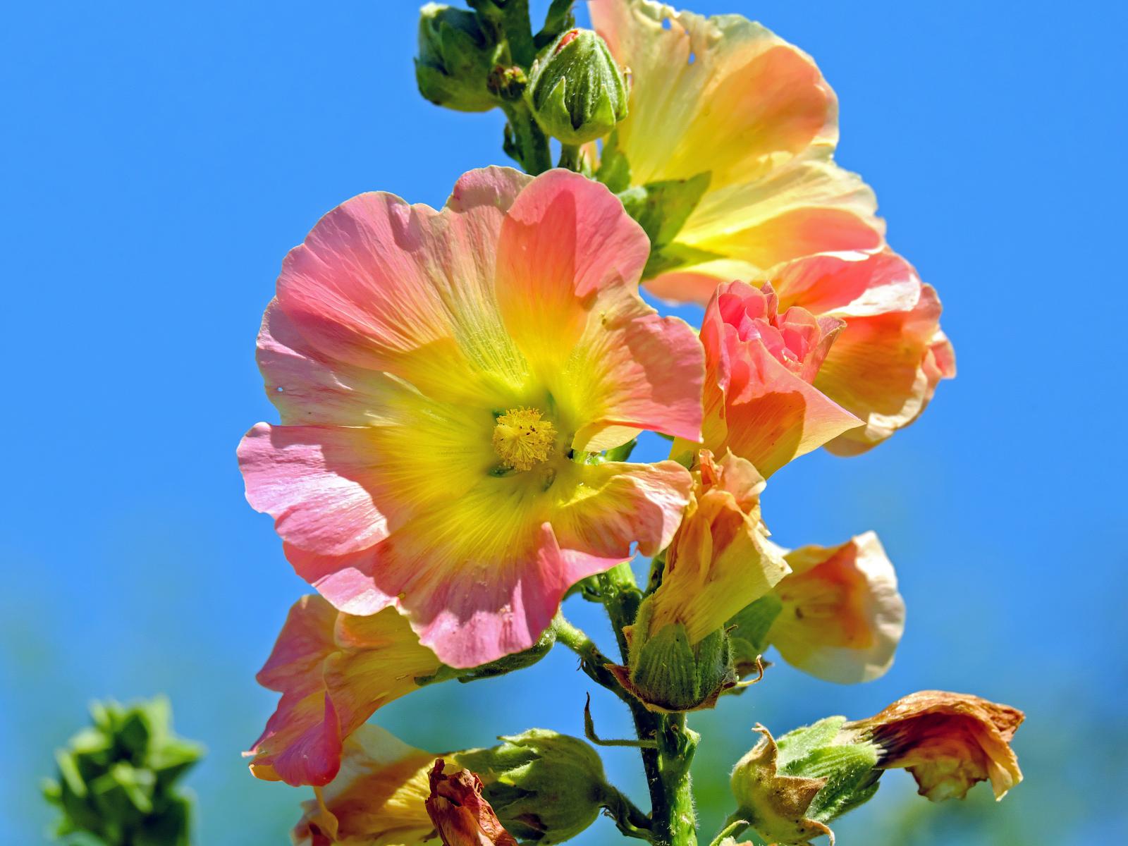 Wallpaper Pink mallow flowers against blue sky