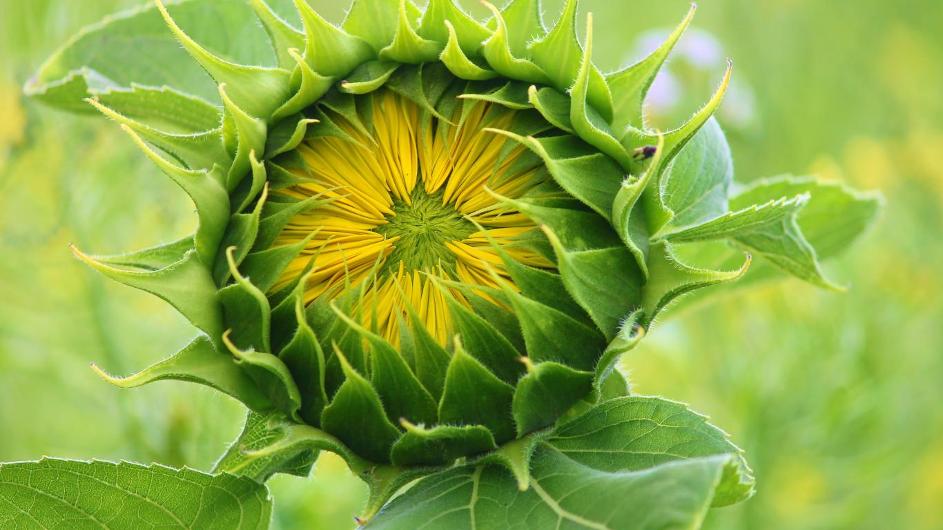 Wallpaper Sunflower in a field with blue flowers against the sky