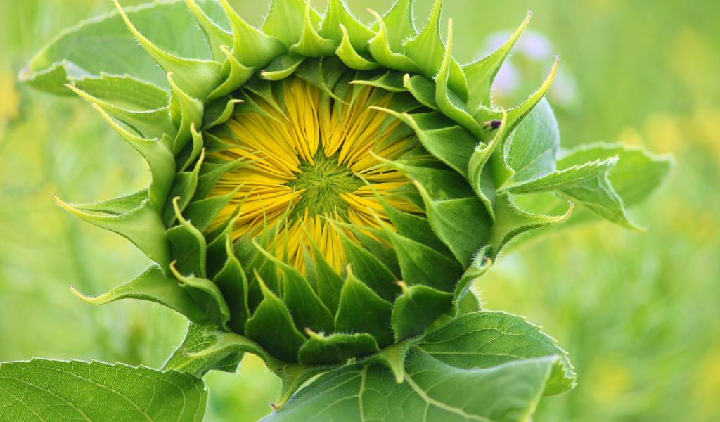 Wallpaper Sunflower in a field with blue flowers against the sky